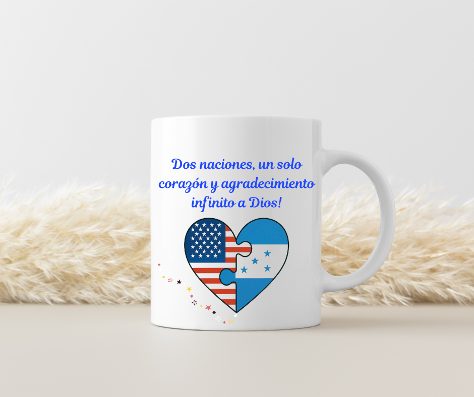 Celebrate your dual heritage and deep connection with this special Honduras and USA Flag Mug! Featuring a unique puzzle heart design, it beautifully symbolizes the love for both nations and your gratitude to God.
